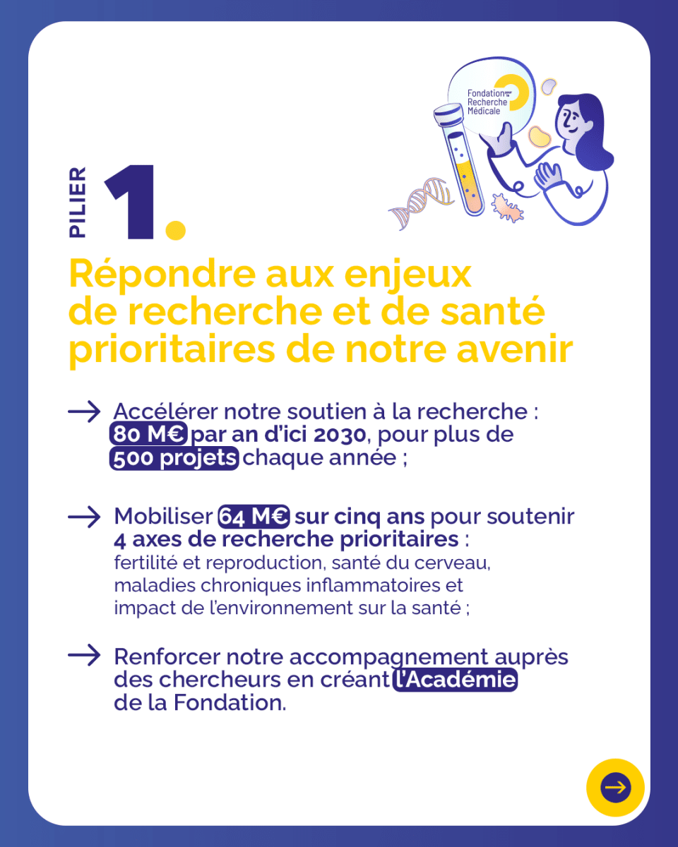 Des initiatives structurantes pour renforcer le rôle de la Fondation comme premier financeur sans but lucratif de la recherche médicale publique en France, tout en contribuant activement aux grands enjeux scientifiques et sociétaux des prochaines années.
