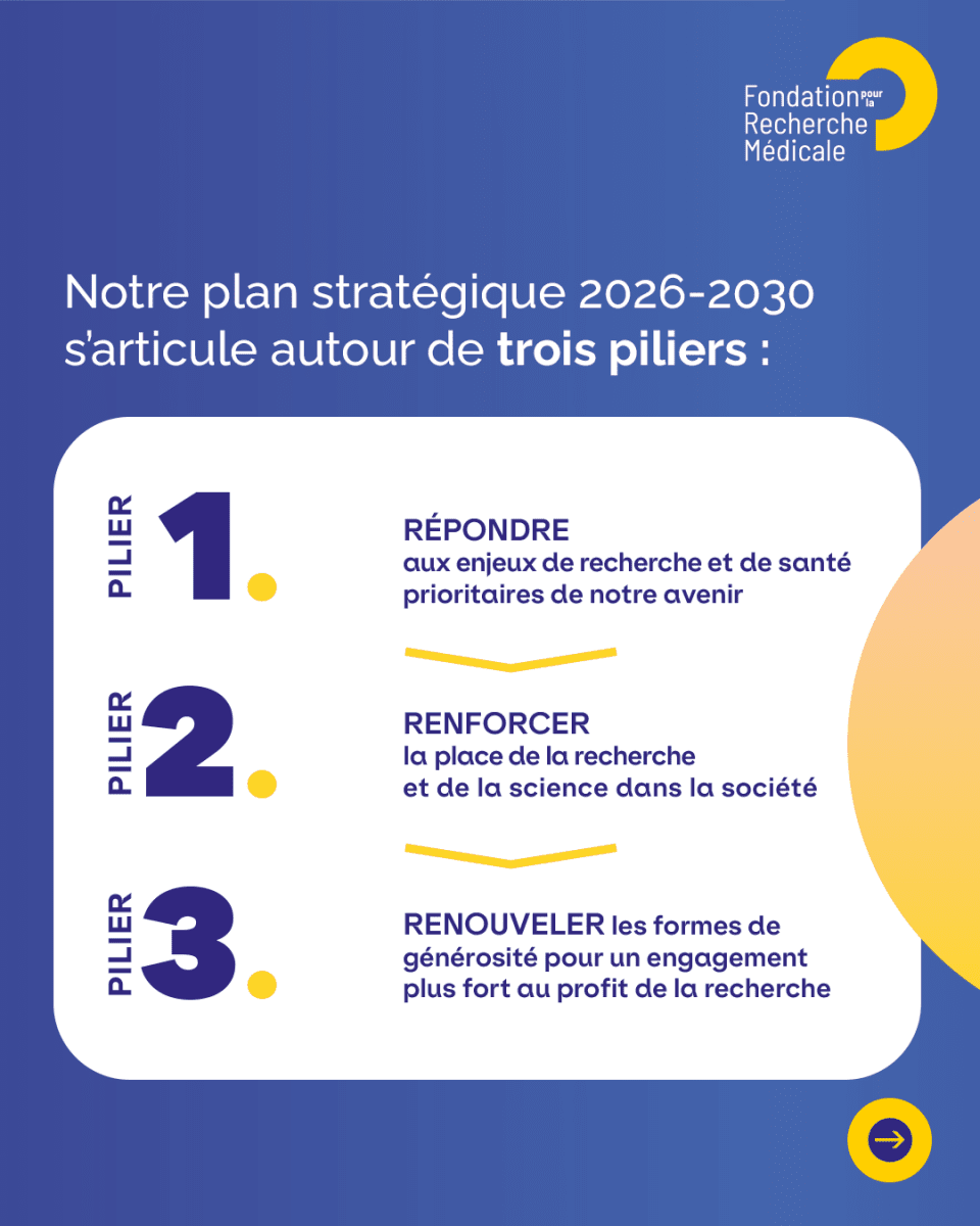 Forte de 79 ans d’engagement et d’action au cœur de la recherche biomédicale, la Fondation pour la Recherche Médicale dévoile son plan stratégique 2030 avec une ambition claire : accroître fortement son soutien à la recherche afin d’atteindre 80 millions d’euros de financements annuels d’ici 2030 et accompagner plus de 2 000 projets de recherche au cours des 5 prochaines années.